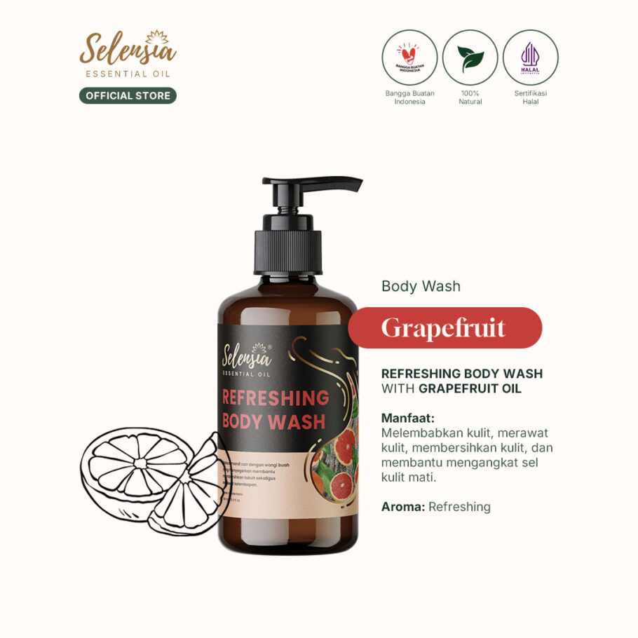 Selensia Body Wash Refreshing Cream with Grafruit merupakan sabun mandi cair dengan wangi buah yang menyegarkan membantu membersihkan tubuh sekaligus merawat kelembaban kulit.