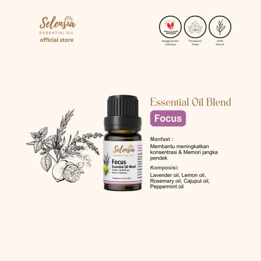 Aroma Focus Essential Oil ini membantu meningkatkan konsentrasi, memperbaiki mood, memberikan efek relaksasi dan memori jangka pendek.